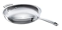 A useful addition to any cookware collection, this everyday fry pan, which measures approximately 11 inches wide by 2-2/5 inches deep, provides a wide, flat base and gently curved sides--great for anything from caramelizing onions for a stew to searing larger cuts of meat and poultry. The innovative pan also offers a unique rim with a specially designed pouring lip to prevent drips and spills, working equally well for left- and right-handed pouring. As part of Le Creuset's Tri-Ply Stainless Steel line, the uncoated fry pan features a full aluminum core sandwiched between two layers of premium-quality stainless steel--from base to rim--for fast, even, all-around heat, eliminating hot spots and ensuring thorough browning and cooking. Its energy-efficient design ... This classic Fry